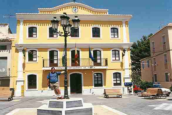 AYUNTAMIENTO Situado en la plaza Mayor convertida en zona peatonal. Es curioso el color amarillo de la fachada. |