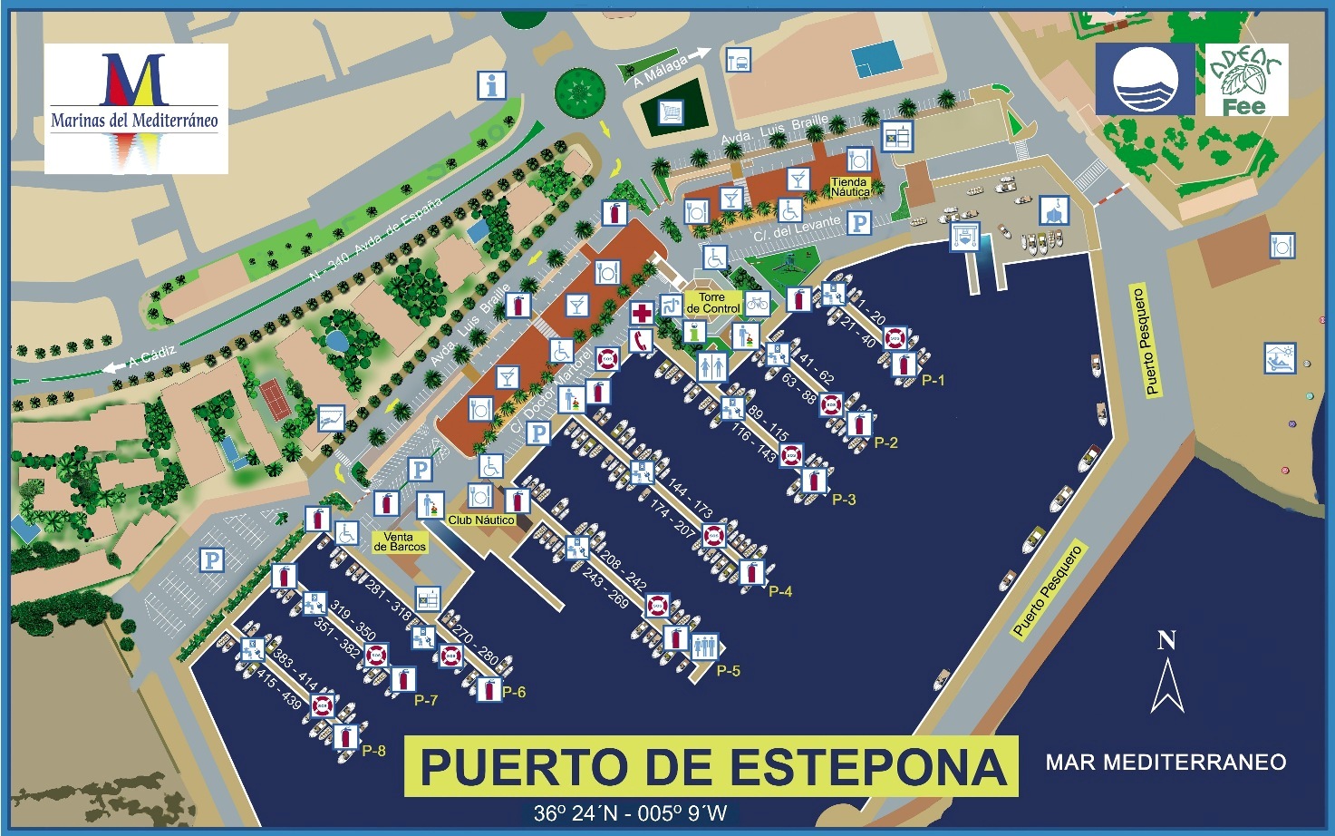 PUERTO DEPORTIVO MARINA DEL MEDITERRÁNEO Dispone de 446 amarres de entre 8 y 35 m. de longitud, la mitad de ellos en alquiler. |