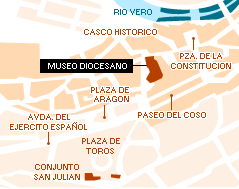 CATEDRAL DE SANTA MARÍA Está en el viejo barrio de Entremuro y es uno de los principales edificios del renacimiento aragonés. Se construyó entre 1517 y 1533 en estilo gótico-tardío. Es curioso que la torre del campanario del S.XVII (llamada Torre de las Campanas), puesto que es hexagonal y se encuentra aislada del conjunto de la catedral. |