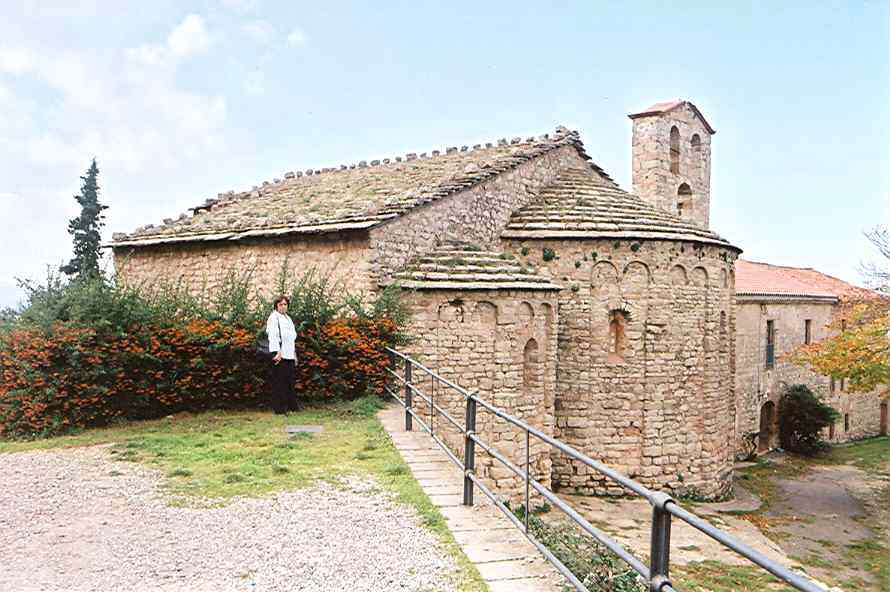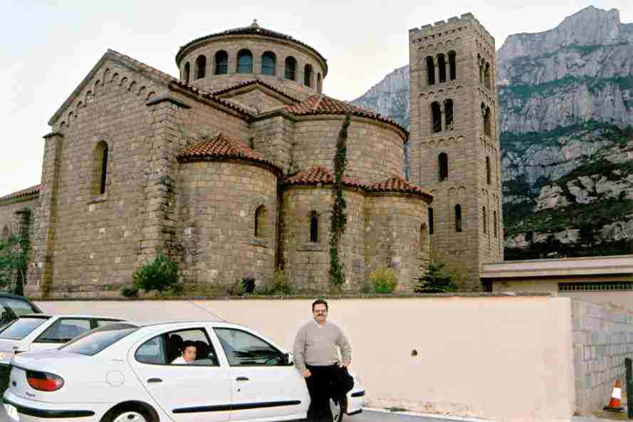 IGLESIA Mientras se asciende de Monistrol de Montserrat al Monasterio, nos encontramos esta iglesia que nos sorprendió por lo cercana que está al Monasterio, y por su estructura, puesto que la capilla interior está totalmente restaurada en estilo moderno formando un semicírculo. El campanario también sobresale por su altura. |