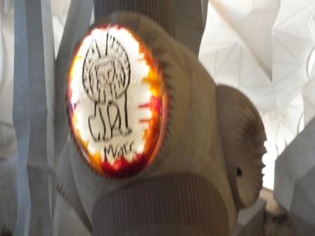 En cambio, las figuraciones y los textos de las vidrieras se encuentran en