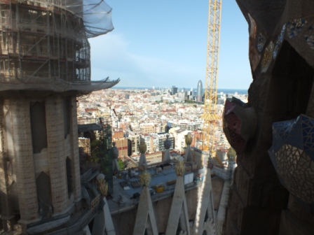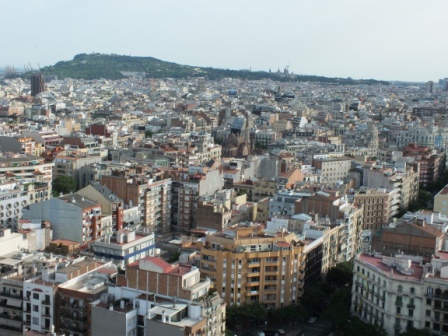 construyendo, así como una panorámica de la ciudad de Barcelona.