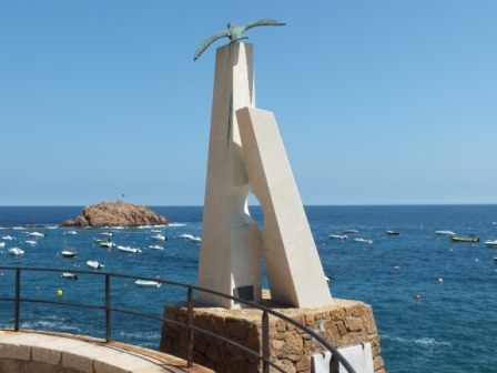 ESTATUA A LA DIOSA MINERVA Es una escultura de bronce de 5 m. de altura, obra de Frederic Marès en 1979. Minerva es la diosa romana de las ciencias y la sabiduría. Aparece representada con los atributos de la guerra, como son el casco y la lanza, con una expresión de frialdad y atemporalidad. Es un homanje a la antigua villa romana sobre la que se asienta el pueblo Turissa, antiguo nombre de Tossa de Mar. Si bien su emplazamiento original era en el camino de acceso al faro y a la Vila Vella, y tras las protestas de los vecinos, alegando que rompía el perfil histórico y monumental de las murallas y el conjunto de la Vila Vella, se decidió colocarla en el otro lado de la playa, en el camino a la playa de la Mar Menuda. |
