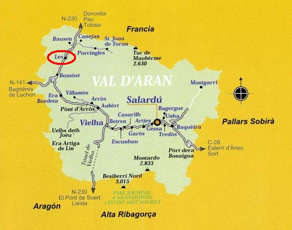Está situado a 634 m. de altitud en la comarca Vall d'Arán, en plenos Pirineos, a orillas del río Garona. Se encuentra junto a N-230 entre Viella y la frontera con Francia. Es un gran centro comercial y turístico con hoteles y tiendas de todo tipo, cuya proximidad con la frontera francesa lo ha convertido en punto de parada y compra para los turistas franceses. |