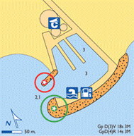 CLUB NÁUTICO Está dotado de magníficas instalaciones y equipamientos, y gestiona el puerto deportivo, que consta de 220 amarres para embarcaciones desde 4 a 24 m. de eslora, y 42 plazas de estantería en marina seca. La profundidad en la bocana del puesto oscila entre 2,30 y 2,50 m. |