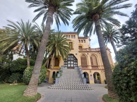 CASA BONET Se edificó en 1918 por Ciriac Bonet, aunque es obra del arquitecto Domènec Sugranyes, discípulo directo y colaborador de Gaudí. En esa época apenas era un lugar de campos y aún no se vislumbraba el auge turístico que estaba por venir, por lo que fue un testimonio de visión y audacia. En la fachada principal hay un reloj de sol con piezas de cerámica y letras neogóticas que dicen: "aprovecha el tiempo qu pasa y no vuelve". |