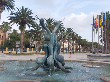 FUENTE DE LOS CARACOLES Fue realizada por el escultor Juan García Ripollés en 1999 en bronce patinado, y se instaló en el Parque Botánico de Salou. Representa un castillo de caracoles, donde unos empujan a otros, mientras que pequeños surtidores de agua emergen de las puntas de sus antenas. En 2021 se reinstala en el Paso Jaime I después de su restauración, en el mismo lugar que ocupó durante la exposición llamada "Paseo de las Esculturas". |