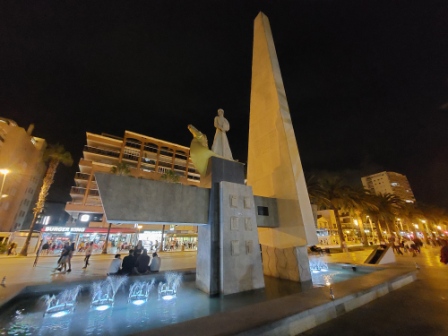 MONUMENTO AL PESCADOR Es una obra de 1990 de Ramón Ferrán, con marcado carácter simbólico sobre la creación del municipio y sus raíces marineras. Está situado en el espigón del muelle y divide las avenidas de Jaume I y Miramar, y las playas de Poniente y de Levante, casi se puede decir que divide el agobio de la tranquilidad. |