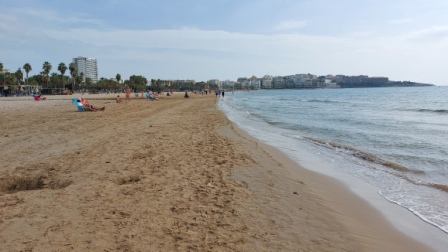 PLAYA DE PONIENTE Es la playa más meridional de las playas urbanas de 1.100 m. de longitud y 40 m. de anchura. Transcurre a lo largo del Paseo Miramar. Es de arena fina dorada y linda norte con el Puerto Deportivo y al sur con el municipio de Cambrils. Es frecuentada por los habitantes del pueblo, puesto que es ideal para niños debido a una suave pendiente de entrada al mar, lo que le hace muy segura. |