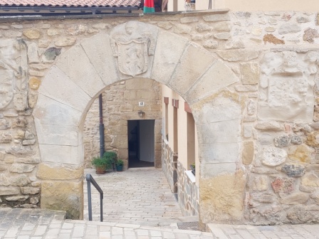 tiene un arco de medio punto con un escudo del S.XVI, acompañado de