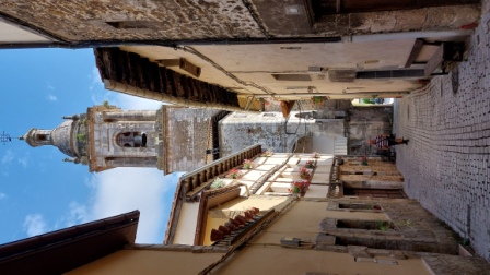 IGLESIA SAN VICENTE MÁRTIR Fue construida en el S.XVIII sobre la antigua iglesia fortaleza, en el interior de la s murallas. El pórtico tiene cinco arcos de medio punto de piedra de sillería. La torre es neoclásica. Se construyó en dos fases. Las campanas se alojan en los cuatro huecos adornados con columnas toscanas en los ángulos. |