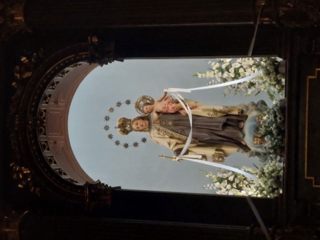sobre el que se dispone una hornacina con el Niño Jesús de Praga en la