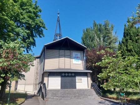 IGLESIA DE SAN MATEO En 1971 fue bendecida por el obispo de Vitoria, monseñor Francisco Peralta. Es un ejemplo de arquitectura religiosa del post Concilio Vaticano II. Es obra de los arquitectos Felipe Dosset y José Luis Picó. Tiene capacidad para 600 personas. Las impresionantes vidrieras orientadas al atardecer, llenan de luz el espacio. |