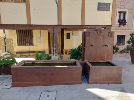 FUENTE Es una fuente moderna fabricada con acero corte, un material moderno conocido por su aspecto oxidado y su durabilidad. |