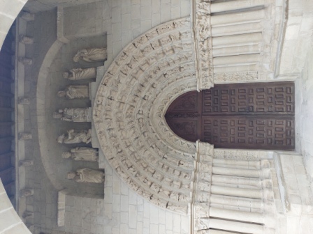 segunda arquivolta, están decoradas con motivos geométricos. Sobre la portada hay un friso del S.XIV con esculturas con temas como la Adoración de los Reyes y la Anunciación. |