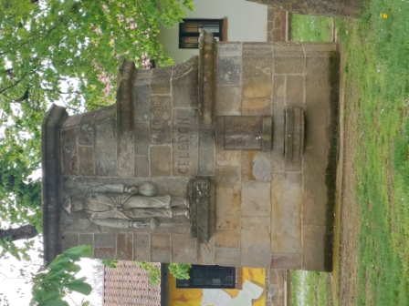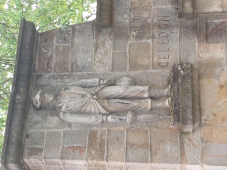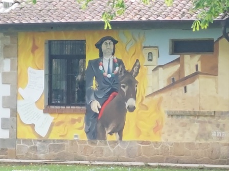 CELEDÓN Celedonio Alzola García de Andoin nacido en 1796, es la persona real que se esconde detrás del CELEDÓN, el popular personaje que abre y cierra las fiestas de Vitoria desde 1957. Debido a su carácter juerguista que, año tras año, acudía a las fiestas de Vitoria, inspiró al célebre muñeco. Nació en Zalduondo y se ha levantado en su honor, una estatua que está situada sobre una fuente de la que mana vino de Rioja Alavesa, el domingo anterior a la baja del Celedón en Vitoria, como no podía ser de otra manera. La figura fue realizada en 1971 por el escultor Juan López Jiménez, y está esculpida con su habitual atuendo: blusa, tocado con boina y acompañado de bota y paraguas. |