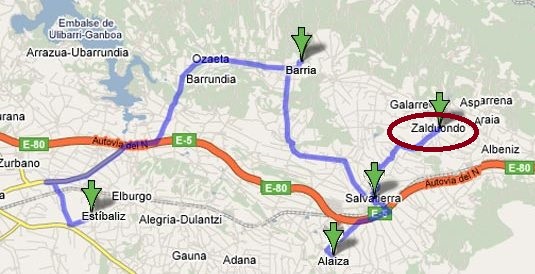 VITORIA >> Argómaniz >> Alegría >> Iruraiz-Gauna >> Salvatierra >> Zalduendo de Álava >> San Millán >> Araia >> Alsasua >> Pamplona |