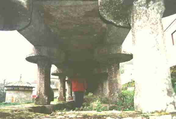 PATAS DE LOS HÓRREOS Los hórreos se apoyan en patas de piedra que los aíslan de la humedad del suelo. Se puede pasear tranquilamente por debajo de ellos. |