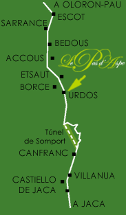 Está situado a 760 m. de altitud en el departamento Pyrénées Atlantiques, en plenos Pirineos junto al Col de Somport, que hace de frontera con España.