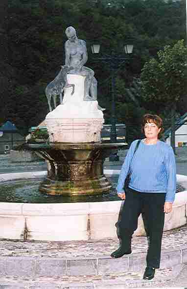 F U E N T E Si bien el pueblo es pequeño, tiene rincones muy bonitos, como esta fuente que representa a una mujer acariciando a su perro. |