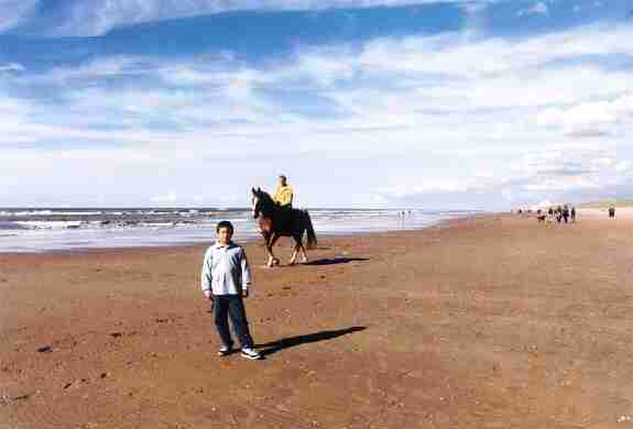 PLAYA Tiene una extensa playa, además de larga es muy ancha, perfecta para bañarse. Sin embargo era curioso que nadie se estuviese bañando ni tomando el sol, a pesar del buen día que hacía. Sólo vimos pasar a un caballo montado por un jinete. |