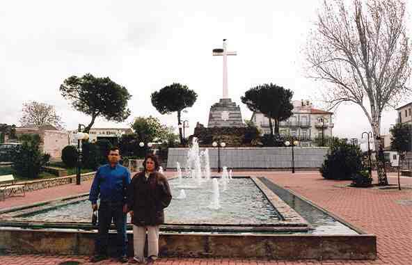 encontramos es esta cruz acompaña de una fuente con varios saltos de