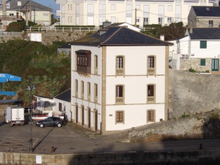 COFRADÍA DE PESCADORES Es la cofradía de Pescadores "San Pedro" Además de coordinar la actividad de los barcos locales dedicados a la pesca artesanal del pulpo, percebe, merluza, xarda, bonito del norte, palometa, sardina y lubinas. También alberga la Lonja, donde se realiza la subasta del pescado fresco recién capturado. El edificio presenta una arquitectura funcional adaptada al entorno portuario, con la fachada blanca, integrada perfectamente entre los muelles y los almacenes de pertrechos. |