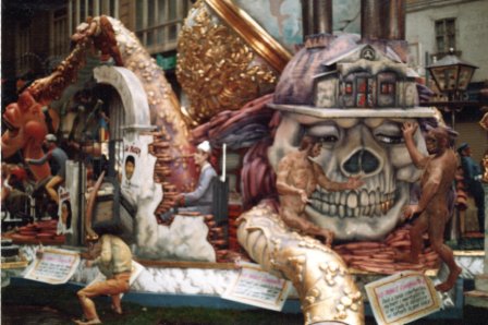 plantan sus obras de arte de cartón piedra, cuya construcción lleva