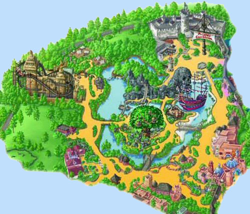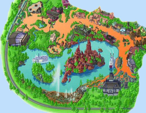 PLAZA CENTRAL En el centro del parque se encuentra el castillo de la bella durmiente. Por la noche hacen un pequeño festival de fuegos artificiales del hada campanilla. |